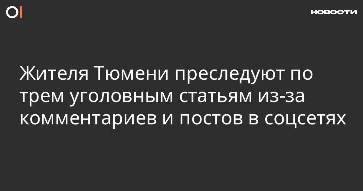 Против жителя Тюмени Владимира Хохлова завели уголовное дело по трем статьям из-за комментариев и постов в соцсетях. Об этом ОВД-Инфо сообщил знакомый с делом источник.