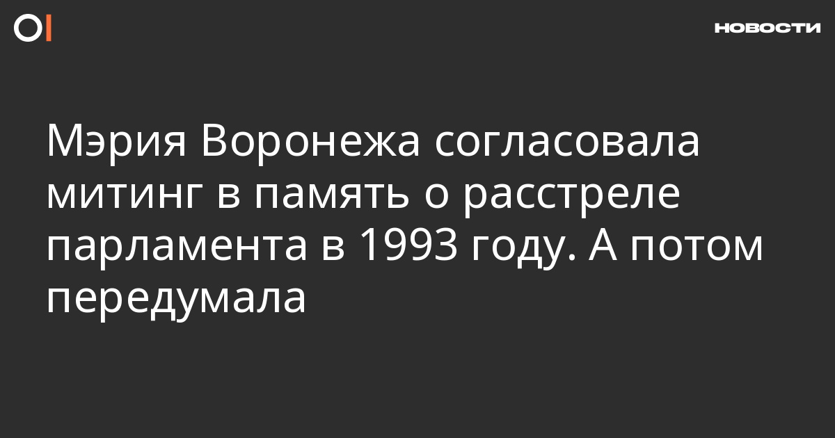 Мэрия Воронежа отозвала разрешение на митинг 4 октября в память о расстреле парламента в 1993 году. Об этом сообщают организаторы мероприятия.