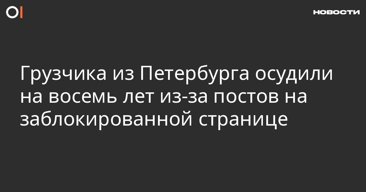 56‑летнего грузчика из Петербурга Дмитрия Сорокина приговорили к восьми годам колонии из-за постов на заблокированной странице во «ВКонтакте». Об этом сообщает «Медиазона».