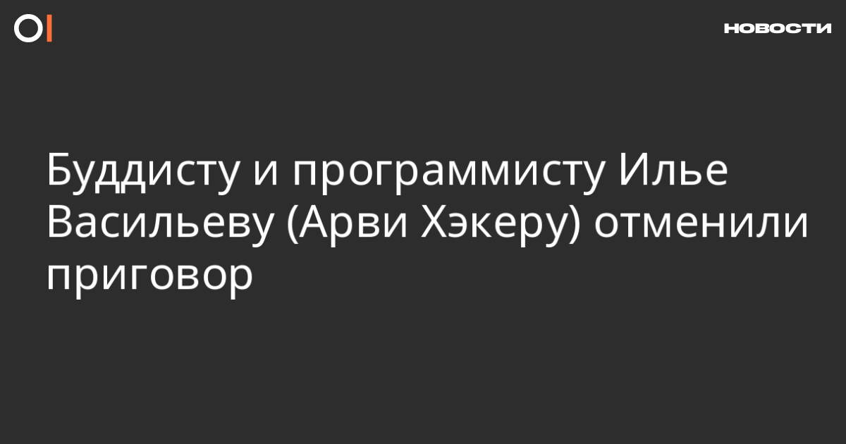 Мосгорсуд отменил приговор буддисту и программисту Илье Васильеву (Арви Хэкеру). Об этом сообщает его адвокат Геворг Алексанян.