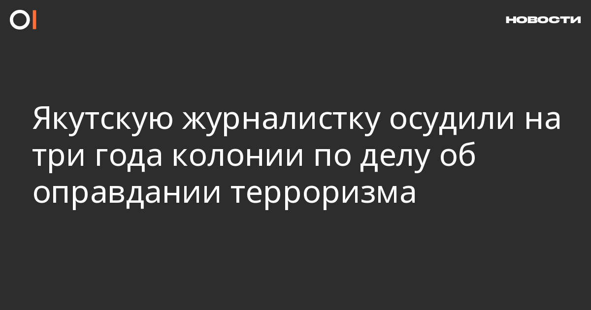 Хабаровский окружной военный суд 28 ноября приговорил журналистку из Сахи Александру Александрову к трем годам колонии общего режима по статье об оправдании терроризма (ч. 2 ст. 205.2 УК). Об этом сообщает Sakhaday.